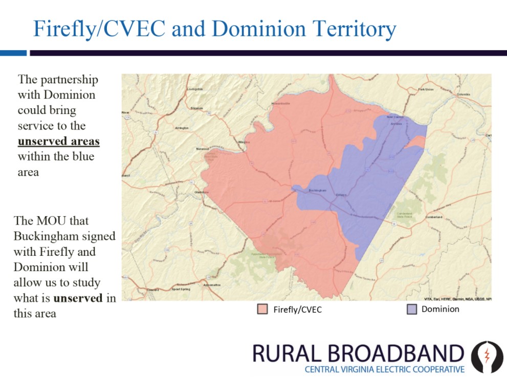 Many thanks to Central Virginia Electric Cooperative, FireFly, and Dominion for all of their work in seeking to provide high-speed broadband internet access to residents of Buckingham County.
