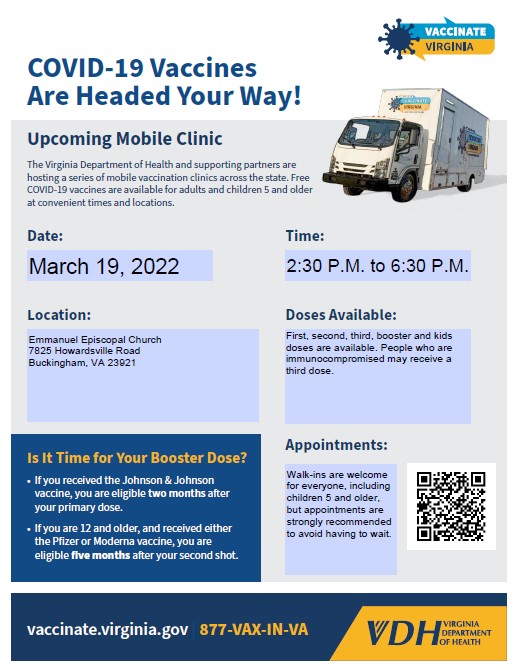 Welcome to The Maysville Voice, the newsletter for those who reside and vote in the Maysville District in Buckingham County. I am pleased to bring you lots of information, links, and resources to inform and engage with you as your County Supervisor. This newsletter is filled with lots of resources and information from our upcoming Monday, March 14, 2022 Board Meeting. We are meeting with the Virginia Department of Transportation at 5 PM to review and amend the Six Year Improvement Plan for state maintained roads, and I have several issues to bring up after hearing from you about many concerns on many roads in our District.