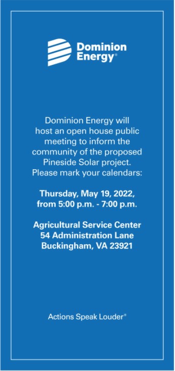 We considered many items of interest, including voting on a public hearing on the potential sale of a large portion of the Industrial Park for the purposes of a mixed use housing and business development, approval of a Special Use Permit for a sawmill, the great success of the Buckingham Anti Litter Task Force, an upcoming Dominion Energy open house, and more.